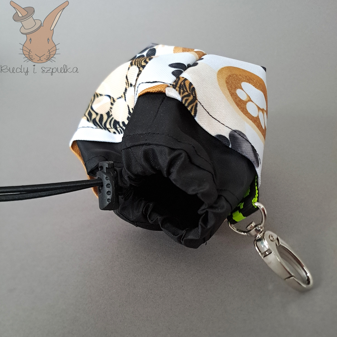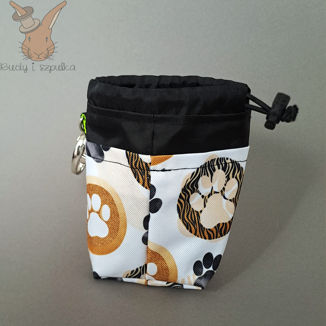 Praktyczna, ręcznie szyta sakiewka na przysmaki dla pupila. Wodoodporna, z karabińczykiem i gumką ściągającą. Idealna na spacery! Twój pupil już czeka.