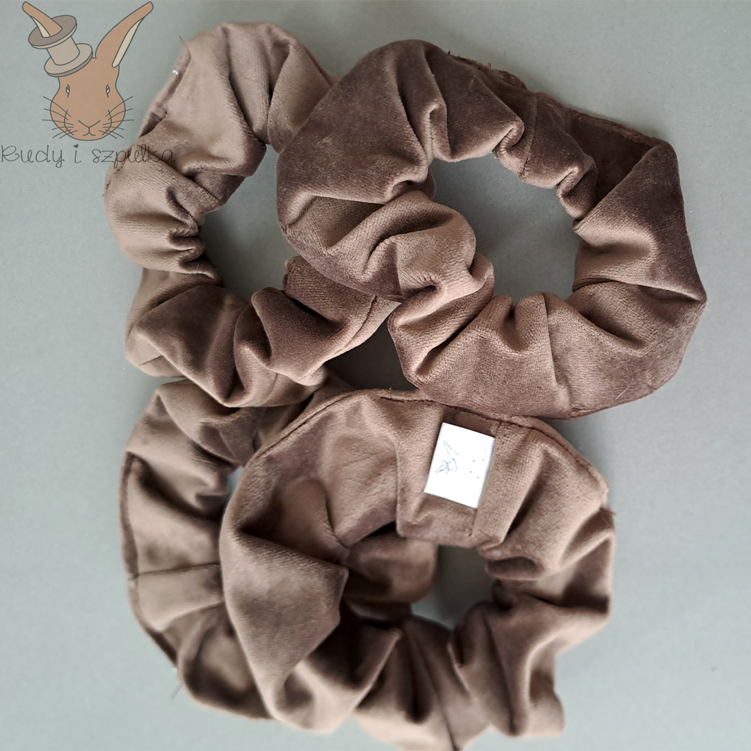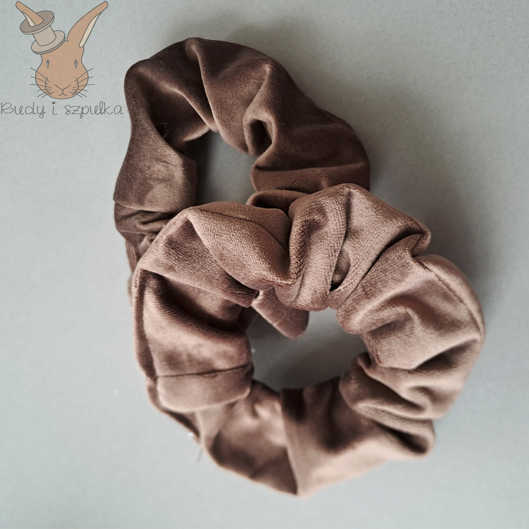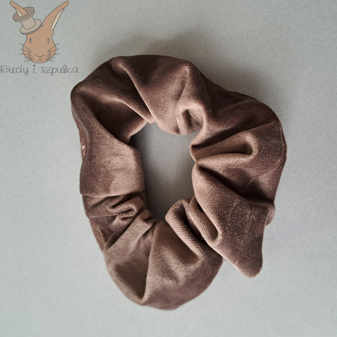 Ręcznie wykonana scrunchie z grubego, miękkiego weluru w klasycznym brązie. Delikatna dla włosów, idealna na każdą okazję. Musisz ją mieć.
