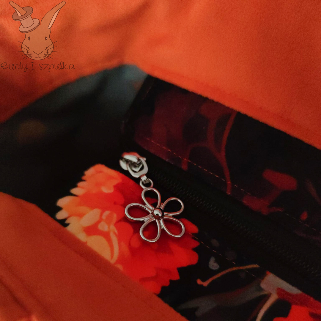 Torebka zosta艂a uszyta z mi臋kkiego, przyjemnego w dotyku weluru w energetycznym, pomara艅czowym kolorze, kt贸ry doskonale o偶ywia stylizacj臋 i przyci膮ga wzrok. Motyw Cocker Spaniela nadaje jej charakteru i sprawia, 偶e jest idealnym wyborem dla mi艂o艣nik贸w ps贸w oraz os贸b poszukuj膮cych oryginalnych akcesori贸w. Wn臋trze torebki wyko艅czone jest bawe艂nian膮 podszewk膮 w z艂ote groszki, co dodaje ca艂o艣ci elegancji i podkre艣la dba艂o艣膰 o estetyk臋.
