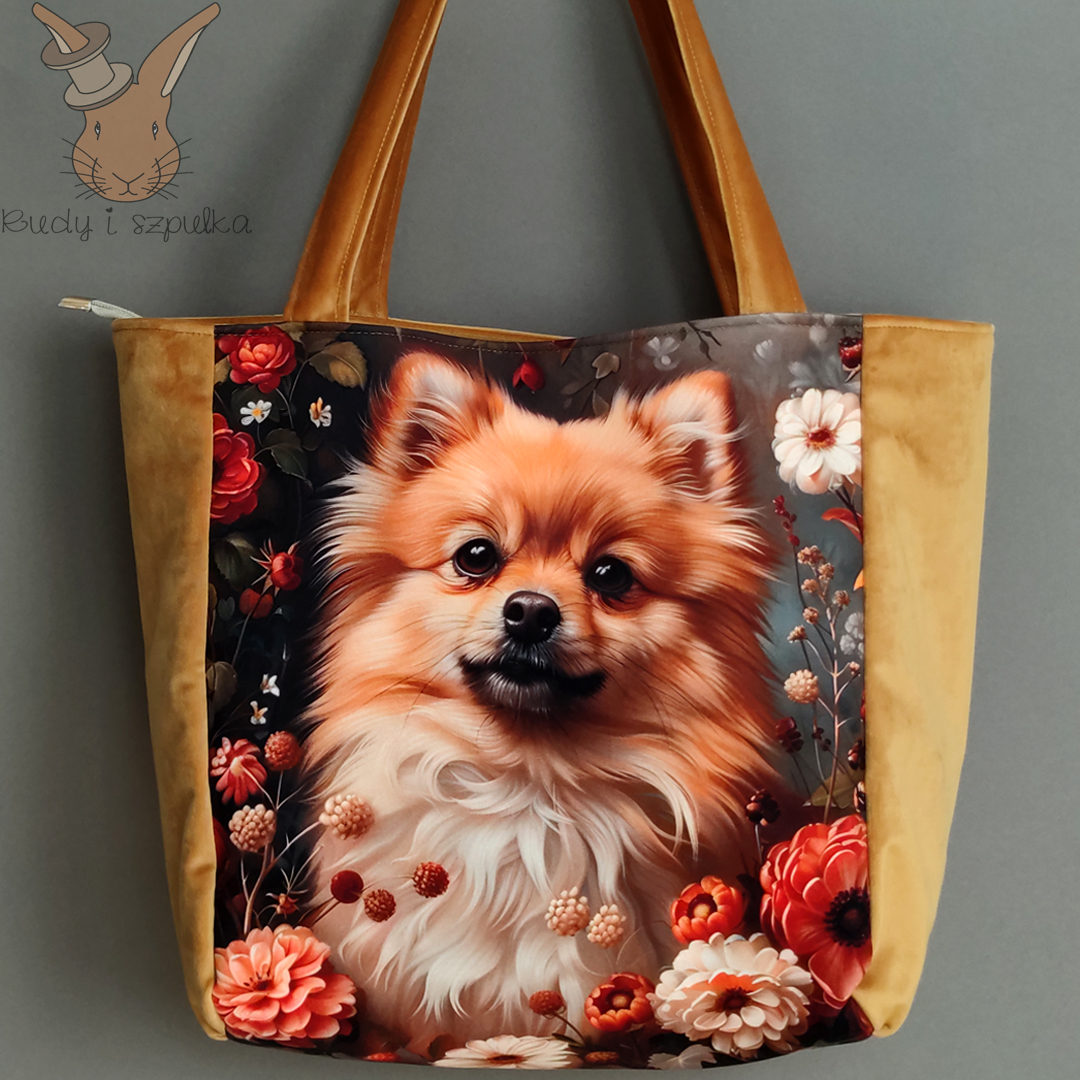 Centralnym elementem torebki jest nadruk przedstawiający urokliwego szpica miniaturowego (pomeraniana) – idealna opcja dla miłośników tej rasy.