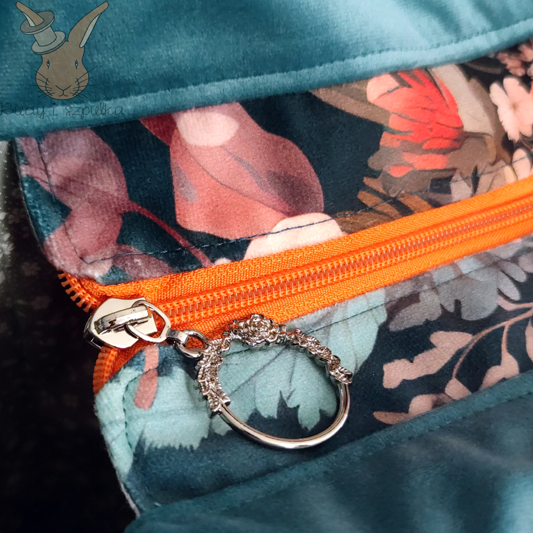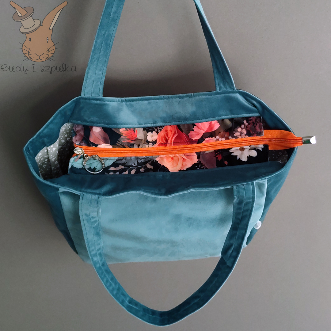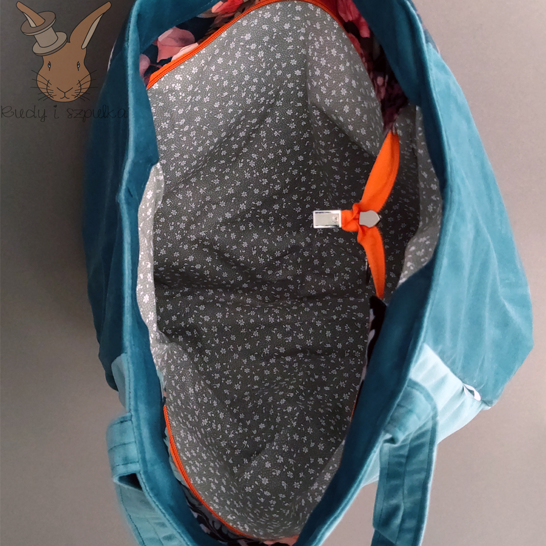Dzięki wymiarom ok. 34x47x31 cm torebka welurowa pomieści wszystkie niezbędne przedmioty – idealna zarówno na co dzień, jak i na wyjątkowe okazje. Wnętrze zostało wykończone szarą bawełnianą podszewką w białe kwiatki, co dodaje jej jeszcze więcej uroku i funkcjonalności.
